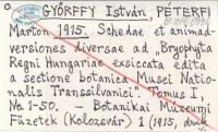 GYŐRFFY István PÉTERFI, Marton. ; 1915 Schedae et animadversiones diversae ad "Bryophyta Regni Hungariae exsiccata edita a sectione botanica Musei Nationalis Transsilvanici". Tomus I, No. 1-50.
