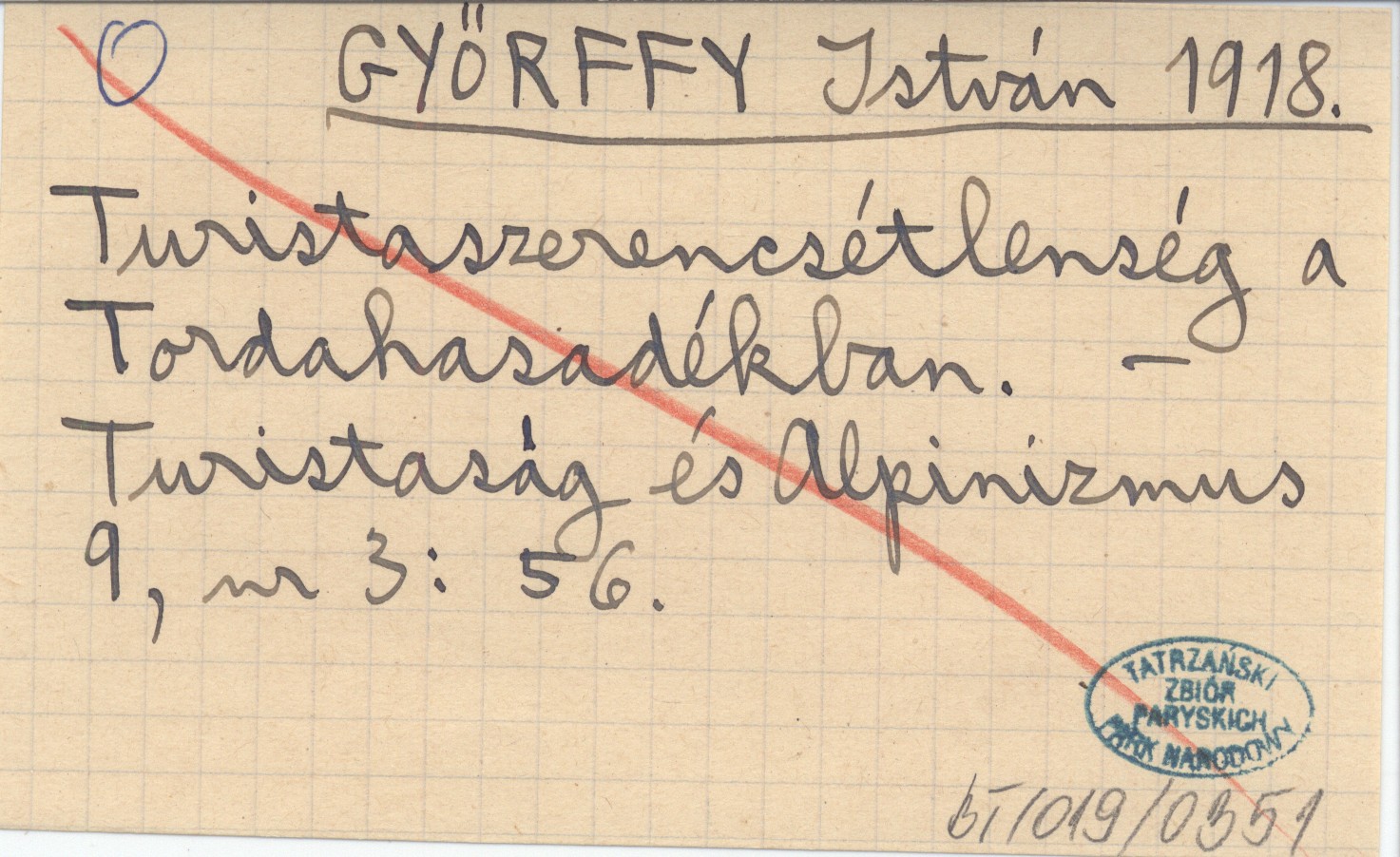 GYŐRFFY István 1918 Turistaszerenczétlenség a Tordahasadékban.