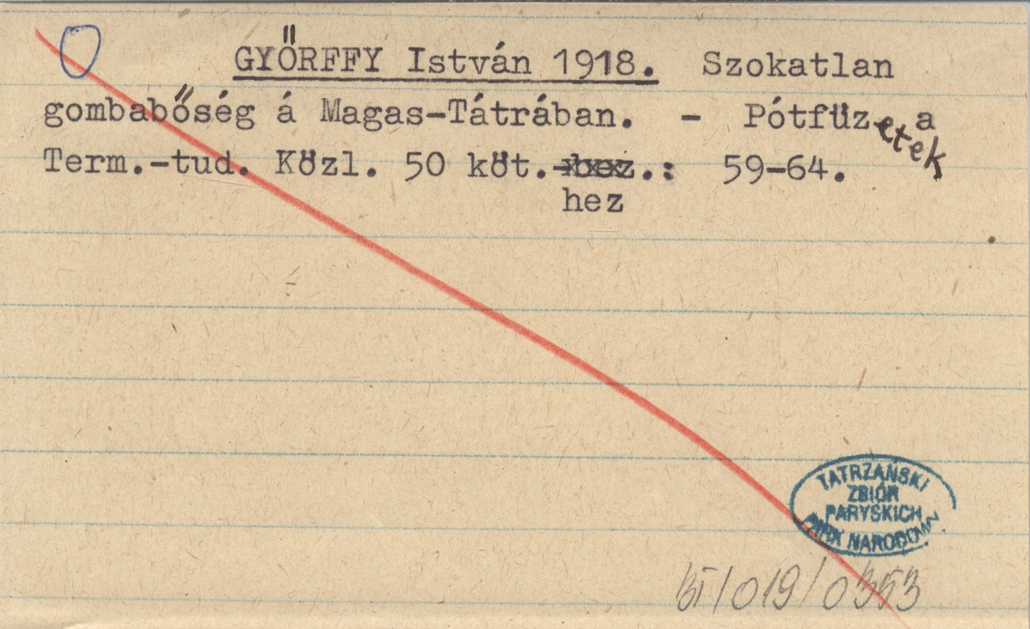 GYŐRFFY István 1918 Szokatlan gombabőség á Magas-Tátrában.