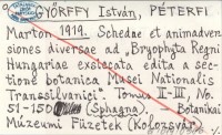 GYŐRFFY István PÉTERFI, Marton. ; 1919 Schedae et animadversiones diversae ad "Bryophyta Regno Hungariae exsiccata edita a sectione botanica Musei Nationalis Transsilanici". Tomus II-III, No. 51-150 (Sphagna).