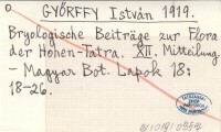 GYŐRFFY István 1919 Bryologische Beiträge zur Flora der Hohen-Tatra. XII. Mitteilung.