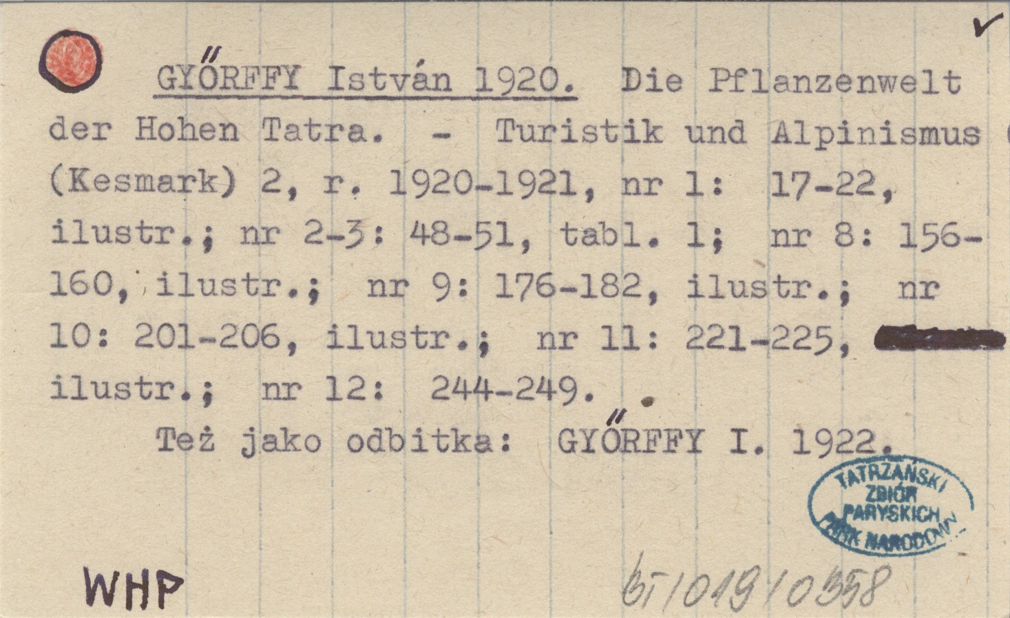 GYŐRFFY István 1920 Die Pflanzenwelt der Hohen Tatra.