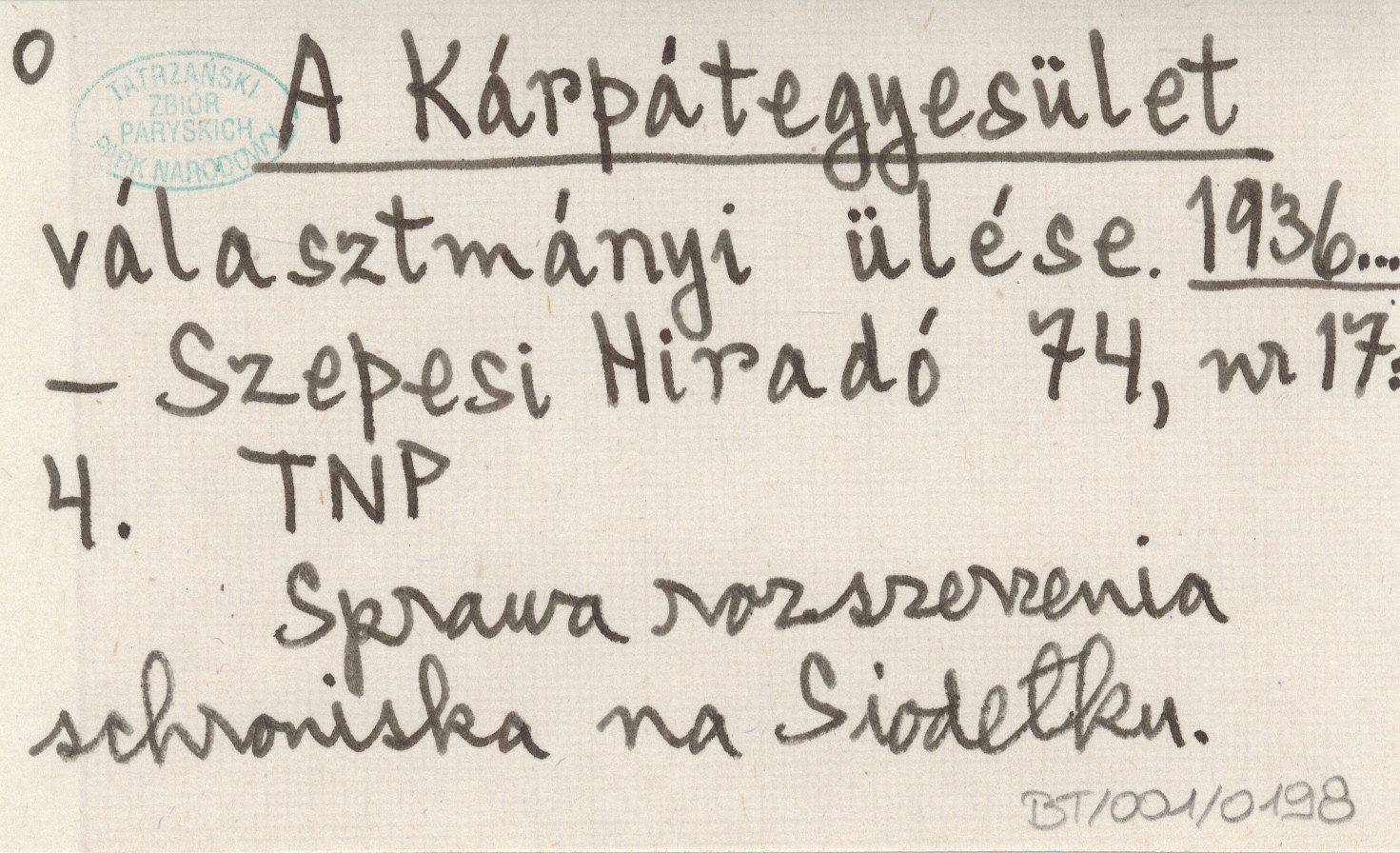 Szepesi Hiradó, 74, nr 17: 4. Sprawa rozszerzenia schroniska na Siodełku.