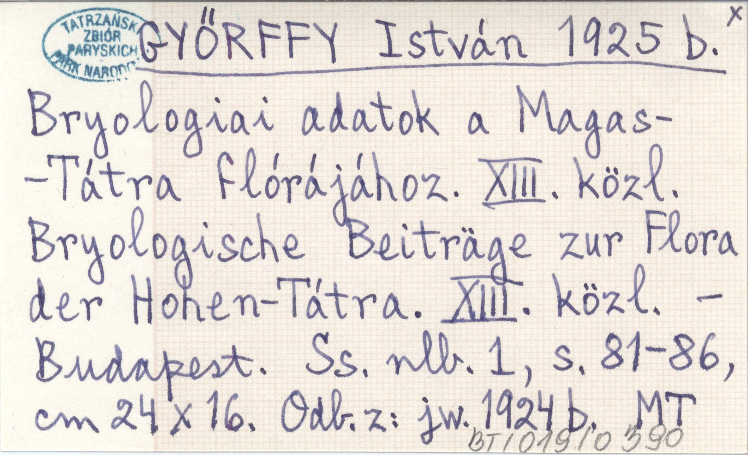 GYŐRFFY István 1925 b Bryologiai adatok a Magas-Tátra flórájához. XIII. közl. Bryologische Beiträge zur Flora der Hohen-Tátra. XIII. közl.