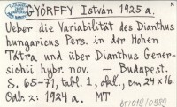 GYŐRFFY István 1925 a Ueber die Variabilität des Dianthus hungaricus Pers. in der Hohen Tátra und über Dianthus Genersichii hybr. nov.