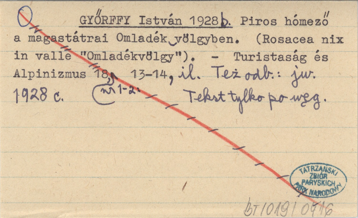 Turistaság és Alpinizmus, 18, nr 1-2: 13-14, il. Też odb.: jw 1928 c. Tekst tylko po węgiersku.