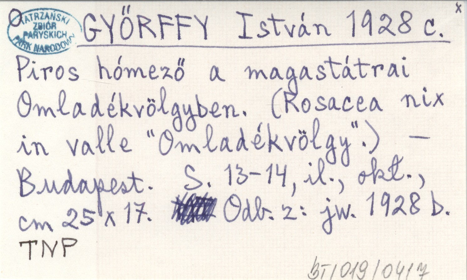 GYŐRFFY István 1928 c Piros hómező a magastátrai Omladékvölgyben. (Rosacea nix in valle "Omladékvölgy").