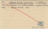 GYŐRFFY I. 1929 A szőlőrigó előfordulása a Magas Tátrában.