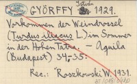 GYŐRFFY István 1929 Vorkommen der Weibdrossel (Turdus iliacus L.) im Sommer in der Hohen Tatra.