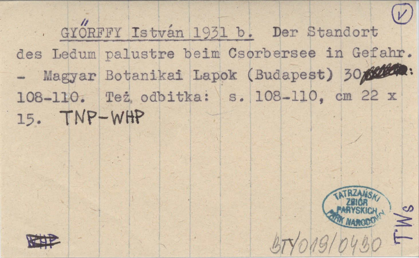 Magyar Botanikai Lapok (Budapest) , 30: 108-110. Też odbitka: S. 108-110, 22x15 cm.