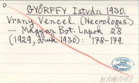 GYŐRFFY István 1930 Vrany Vencel. (Necrologus).