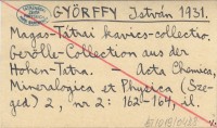 GYŐRFFY István 1931 a Magas-Tátrai kavics-collectio. Gerölle-Collection aus der Hohen-Tatra.