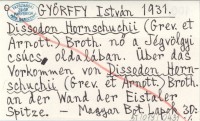 GYŐRFFY István 1931 Dissodon Hornschuchii (Grev. et Arnott.) Broth. nő a Jégvölgyi csúcs oldalában. Über das Vorkommen von Dissodon Hornschuchii (Grev. et Arnott.) Broth. an der Wand der Eistaler Spitze.
