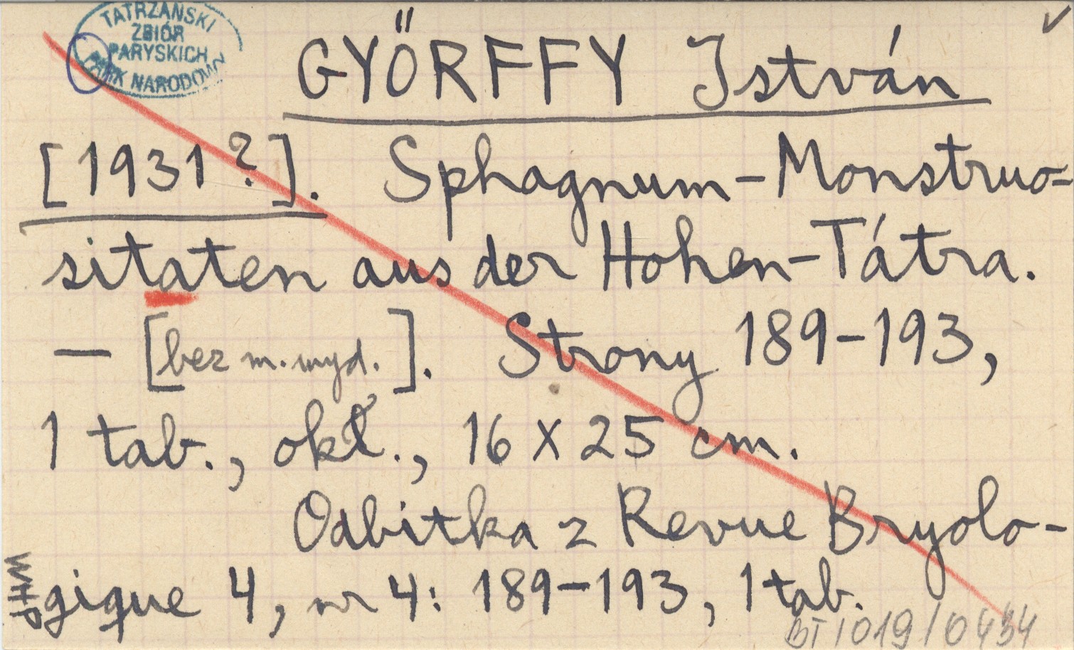 GYŐRFFY István [1931?] Sphagnum-Monstruositsten aus der Hohen-Tátra.
