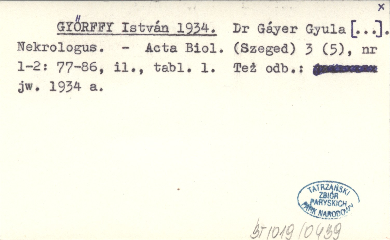 GYŐRFFY István 1934 Dr Gáyer Gyula [...]. Nekrologus.