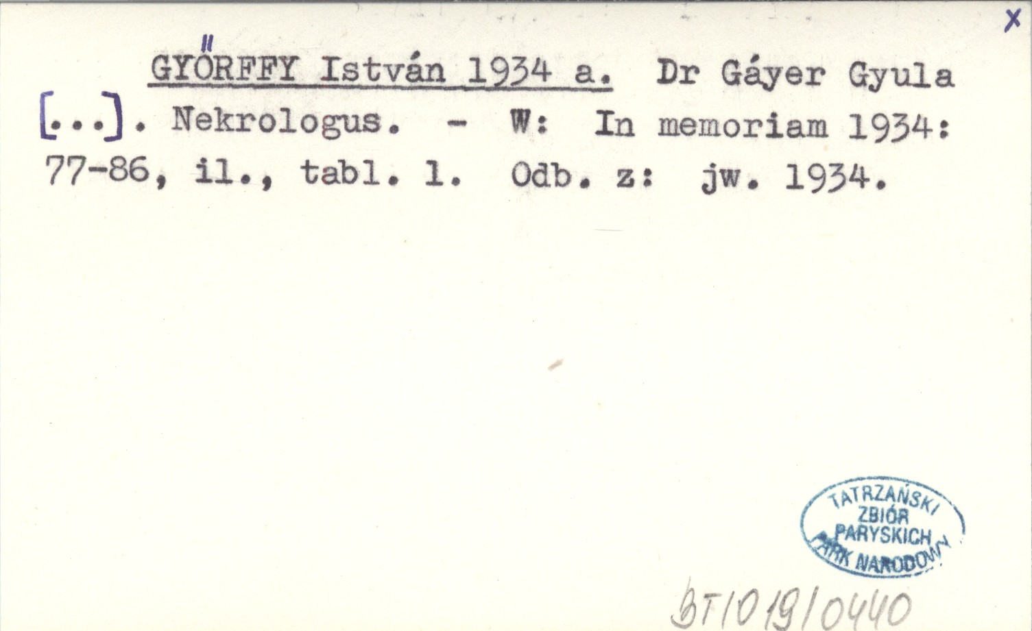 GYŐRFFY István 1934 a Dr Gáyer Gyula [...]. Nekrologus.