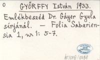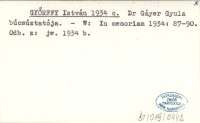 GYŐRFFY István 1934 a Dr Gáyer Gyula [...]. Nekrologus.