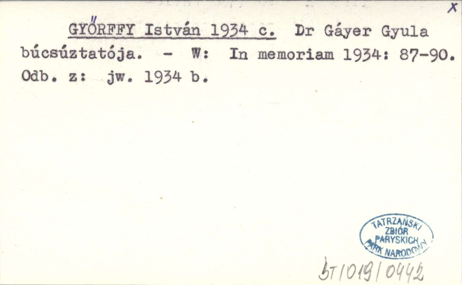 GYŐRFFY István 1934 c Dr Gáyer Gyula búcsúztatója.