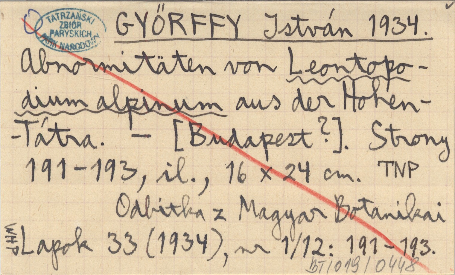 Budapest , 191-193, il., 16x24 cm. Odbitka z Magyar Botanikai Lapok 33 (1934), nr 1/12: 191-193.