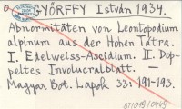 GYÕRFFY István 1934 Abnormitäten von Leontopodium alpinum aus der Hohen-Tátra. I. Edelweiss-Ascidium. II. Doppeltes Involucralblatt.