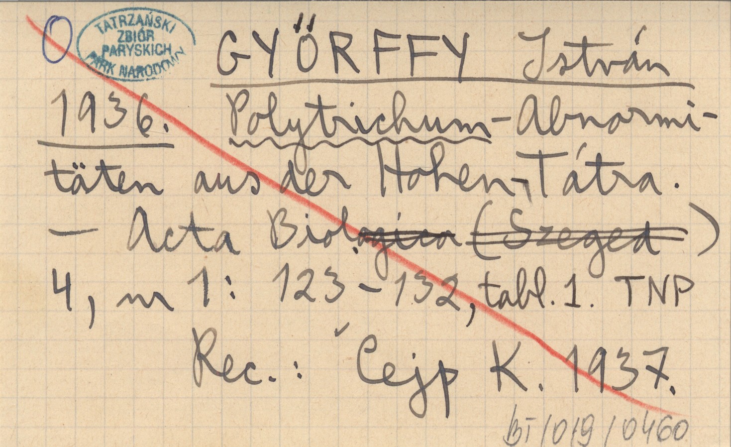 GYŐRFFY István 1936 Polytrichum-Abnormitäten aus der Hohen-Tátra.