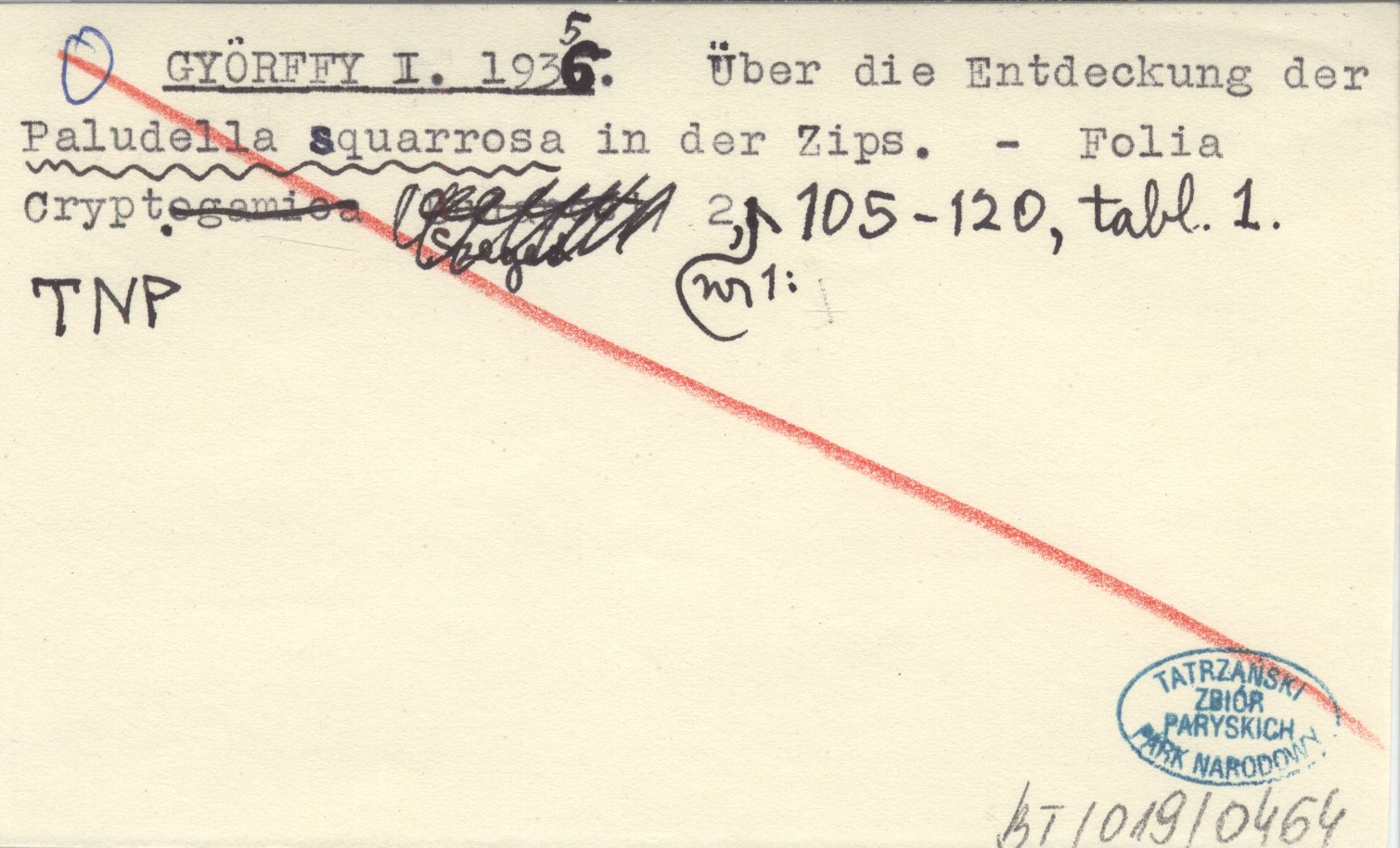GYŐRFFY I. 1935-1936 Über die Entdeckung der Paludella squarrosa in der Zips.
