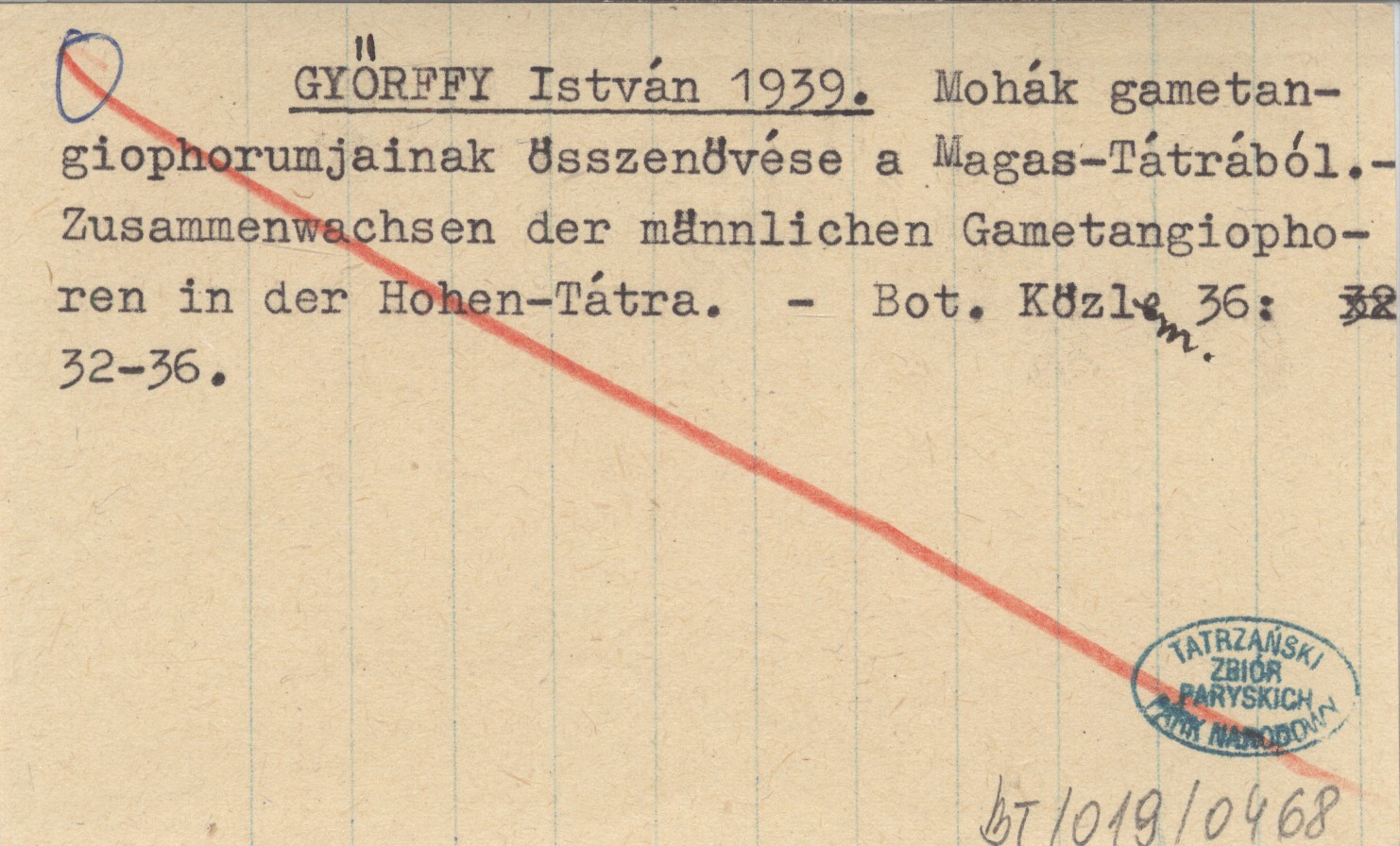 GYŐRFFY István 1939 Mohák gametangiophorumjainak öszenövése a Magsa-Tátrából. - Zusammenwachsen der männlichen Gametangiophoren in der Hohen-Tátra.