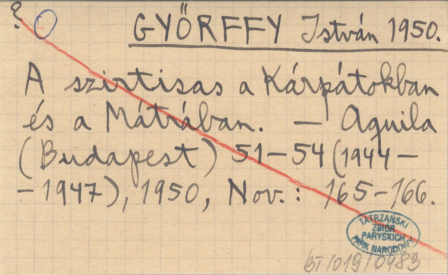 Aquila (Budapest) , 51-54 (1944-1947), 1950, Nov.: 165-166.