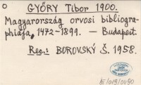 GYŐRY Tibor 1900 Bibliographia medica Hungariae.
