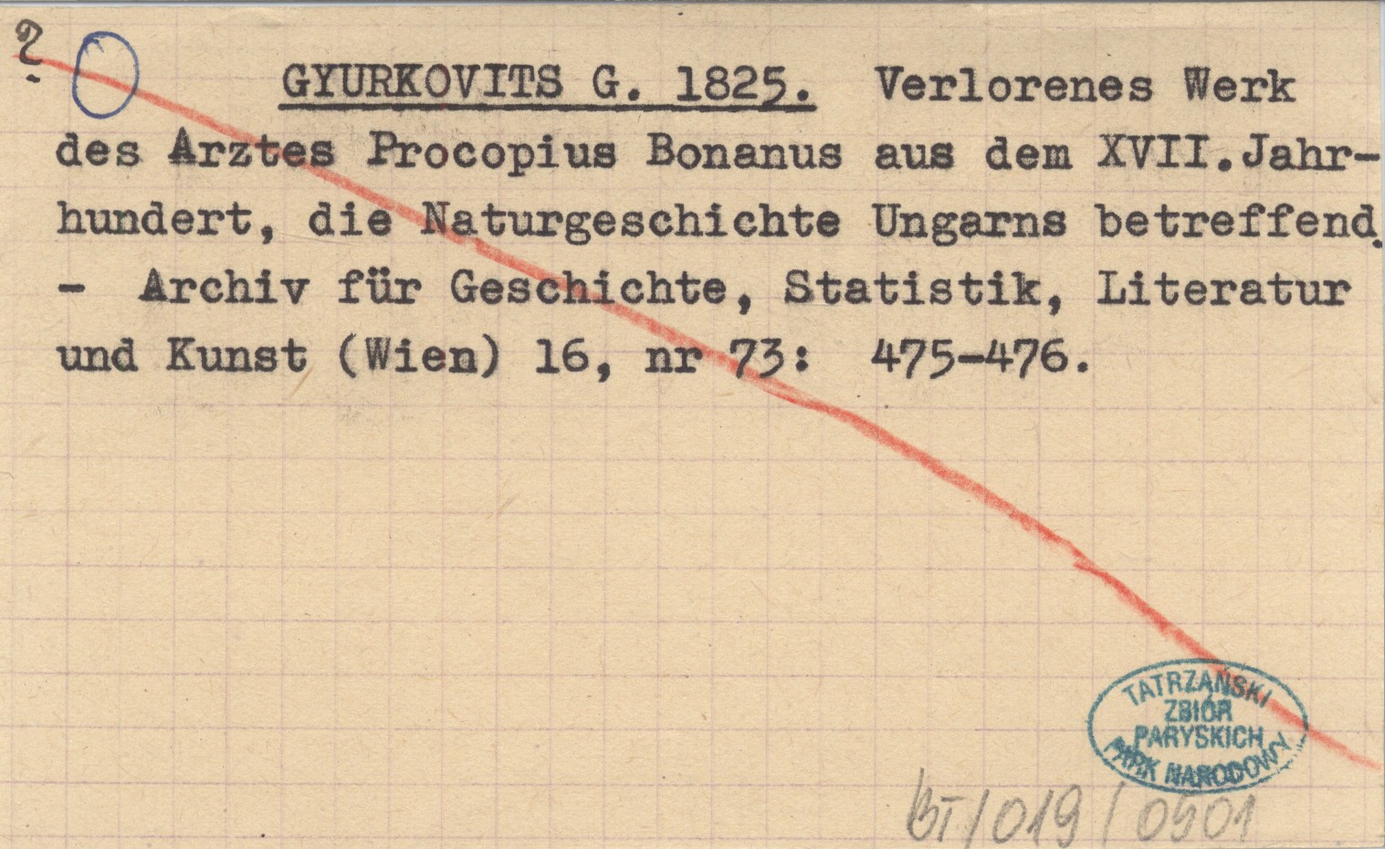 GYURIKOVITS G. 1825 Verlorenes Werk des Arztes Procopius Bonanus aus dem XVII.Jahrhundert, die Naturgeschochte Ungarns betreffend.