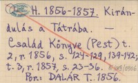 H. 1856-1857 Kirándulás a Tátrába.
