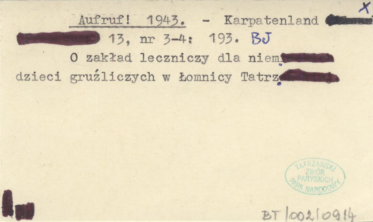 Karpatenland, 13, nr 3-4: 193. O zakład leczniczy dla niem. dzieci gruźliczych w Łomnicy Tatrz.