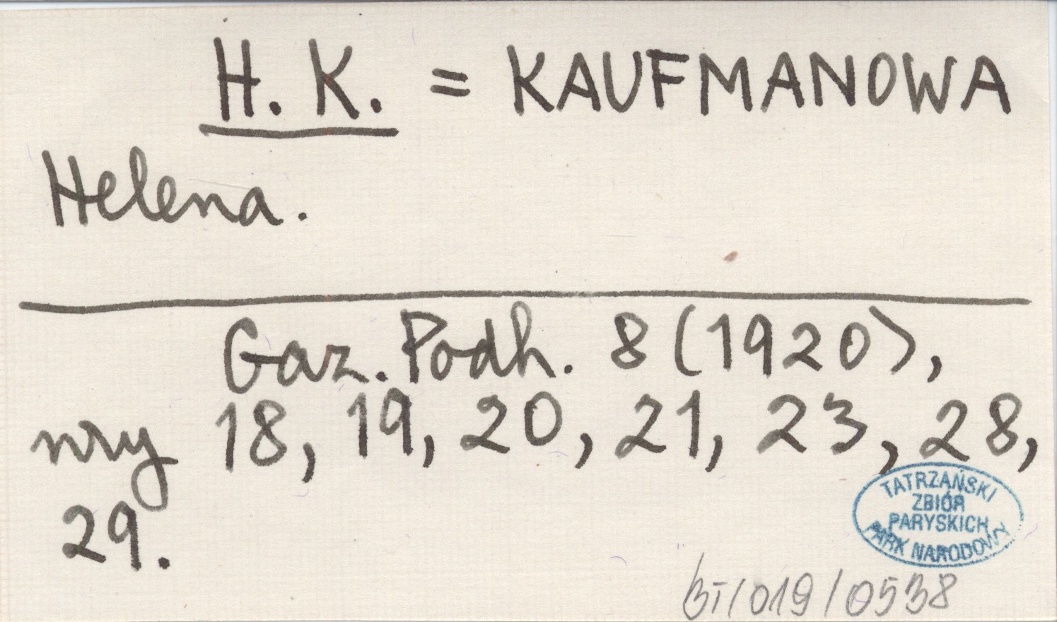 H. K. KAUFMANOWA Helena Gazeta Podhalańska 8 (1920), nr 18, 19, 20, 21, 23, 28, 29.