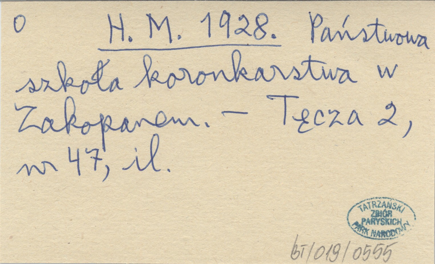 H. M. 1928 Państwowa szkoła koronkarstwa w Zakopanem.