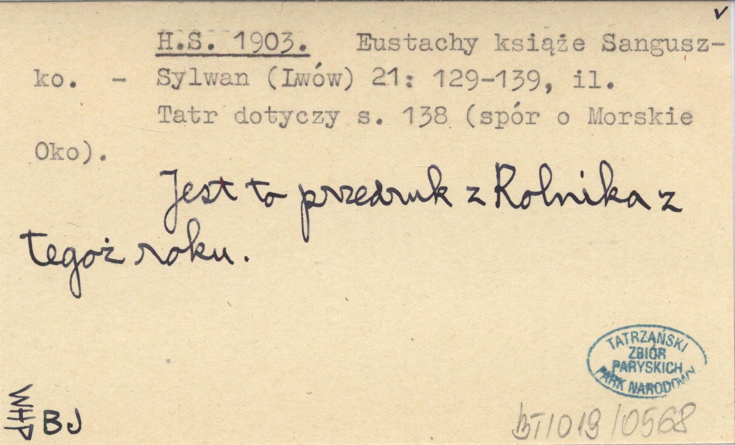 Sylwan (Lwów) , 21: 129-139, il. Tatr dotyczy S. 138 (spór o Morskie Oko). Jest to przedruk z Rolnika z tegoż roku.