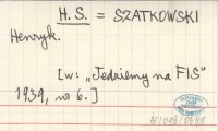 H. S. SZATKOWSKI Henryk ["Jedziemy na FIS" 1939, nr 6].