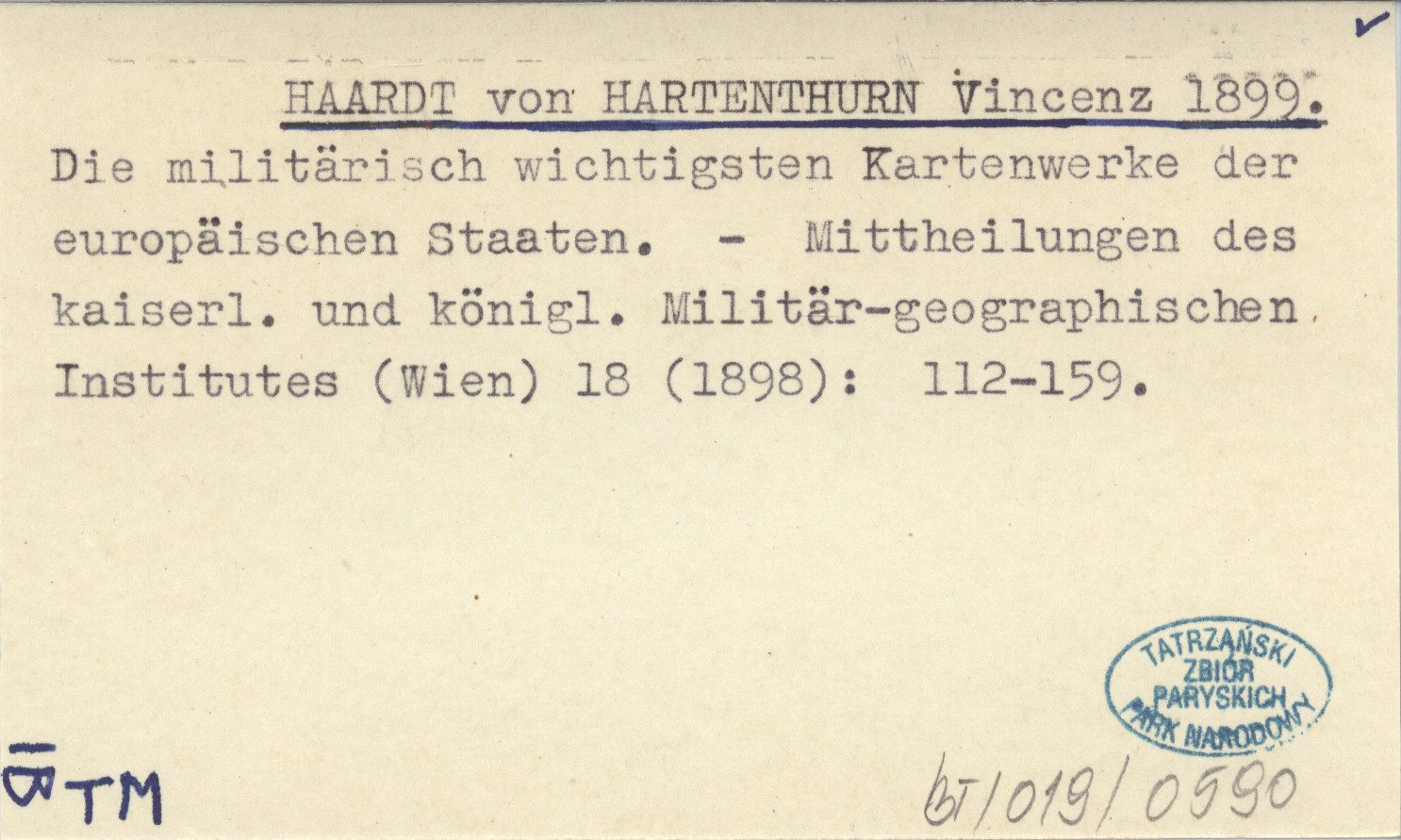 HAARDT von HARTENTHURN Vincenz 1899 Die militärisch wichtigsten Kartenwerke der europäischen Staaten.
