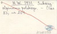 H. W. 1931 Sukcesy alpinizmu polskiego.