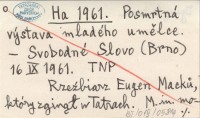 Ha 1961 Posmrtná výstava mladého umělce.