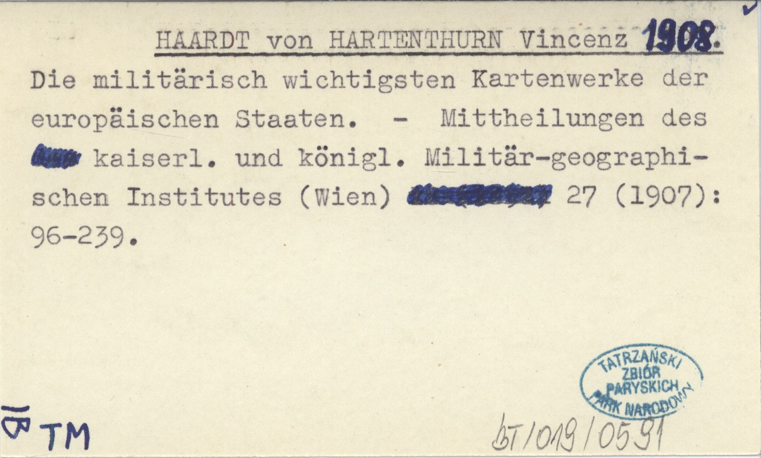 HAARDT von HARTENTHURN Vincenz 1908 Die militärisch wichtigsen Kartenwerke der europäischen Staaten.