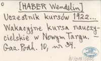 Uczestnik kursów [HABER Wendelin] 1922... Wakacyjne kursa nauczycielskie w Nowym Targu.