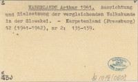 HABERLANDT Arthur 1941 Ausrichtung und Zielsetzung der vergleichenden Volkskunde in der Slowakei.