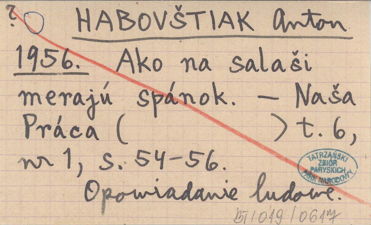HABOVŠTIAK Anton 1956 Ako na salaši merajú spánok.