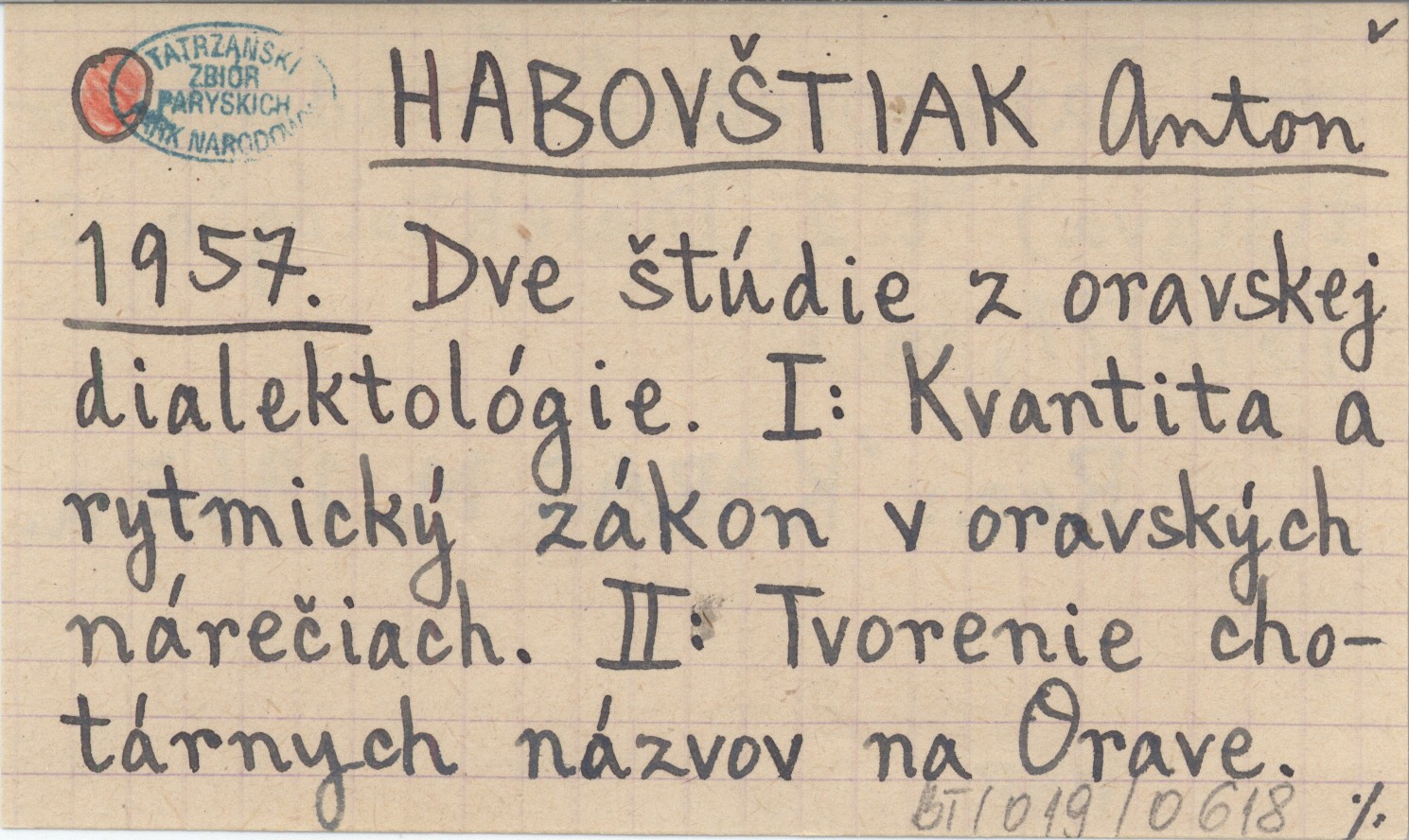 Dve ątúdie z oravskej dialektológie. I: Kvantita a rytmický zákon v oravských nárečiach. II: Tvorenie chotárnych názvov na Orave.