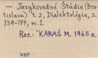 Jazykovedné ©túdie, Dialektológia (Bratislava) , T. 2, S. 139-177, 1 m.