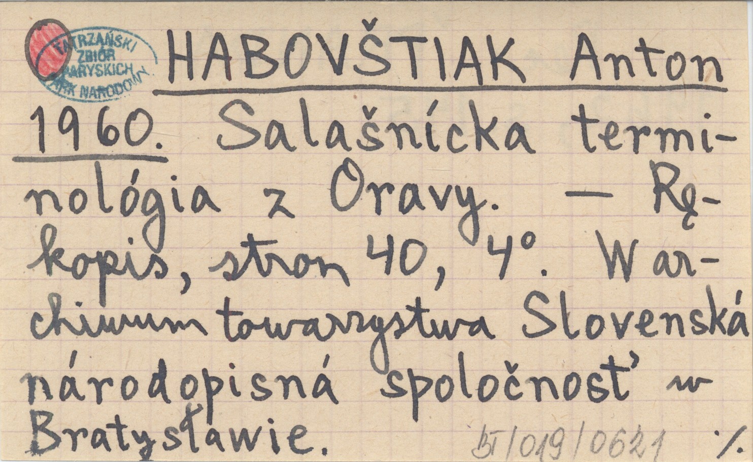 HABOVŠTIAK Anton 1960 Salašnícka terminolóhia z Oravy.