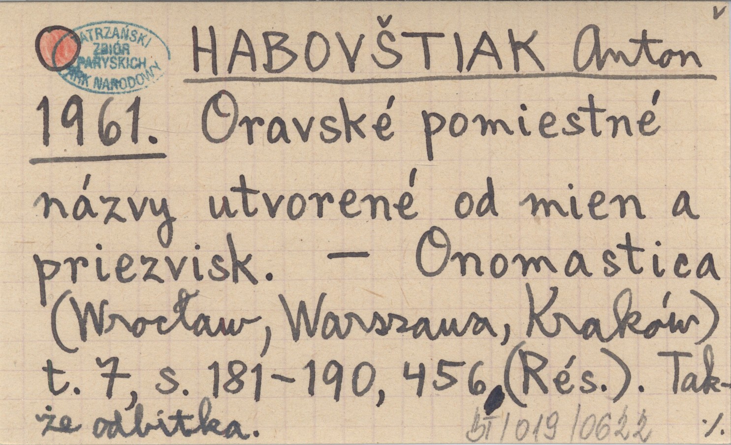 HABOVŠTIAK Anton 1961 Oravské pomiestné názvy utvorené od mien a priezvisk.