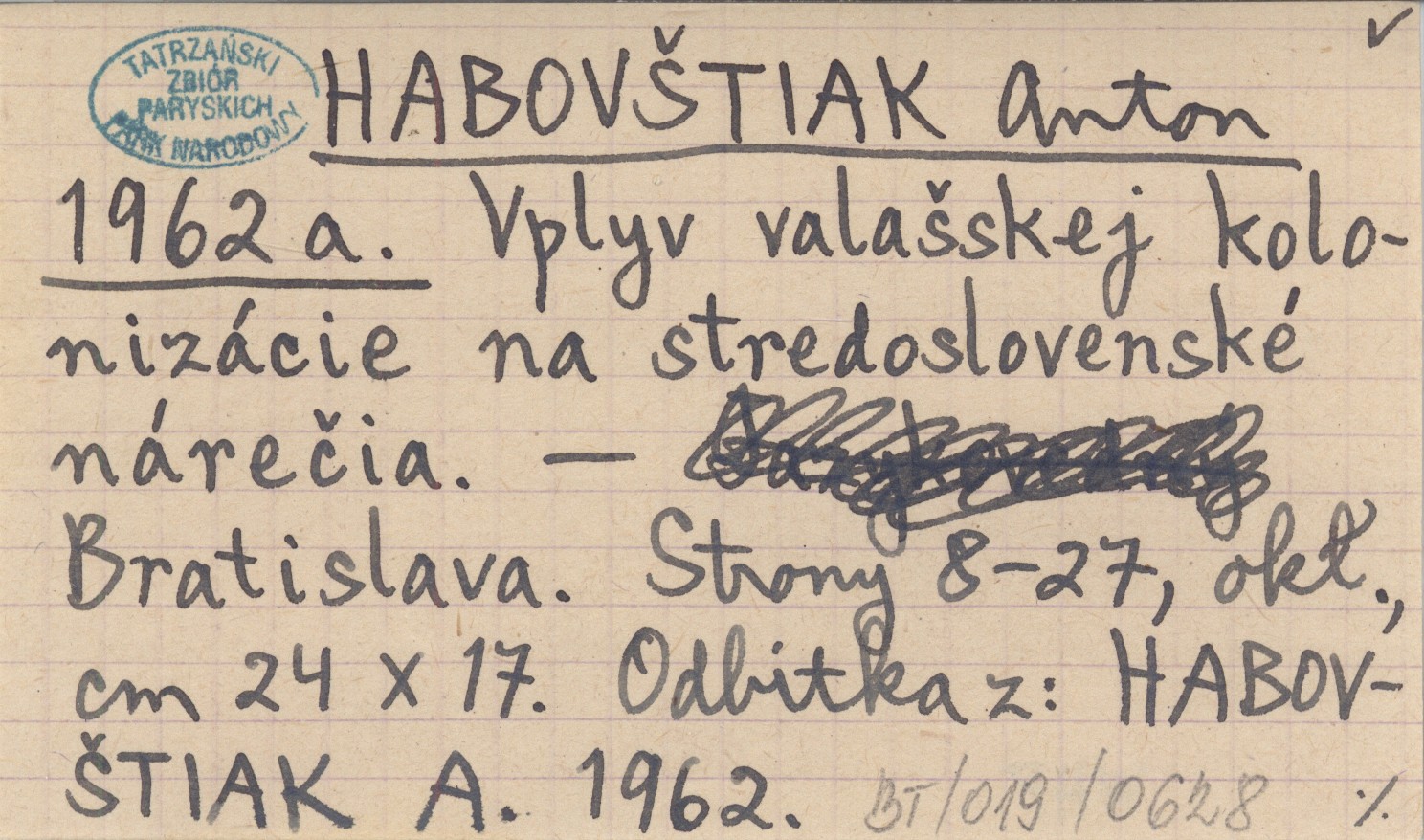 Bratislava , S. 8-27, okł., 24x17 cm. Odbitka z: HABOVŠTIAK A. 1962.