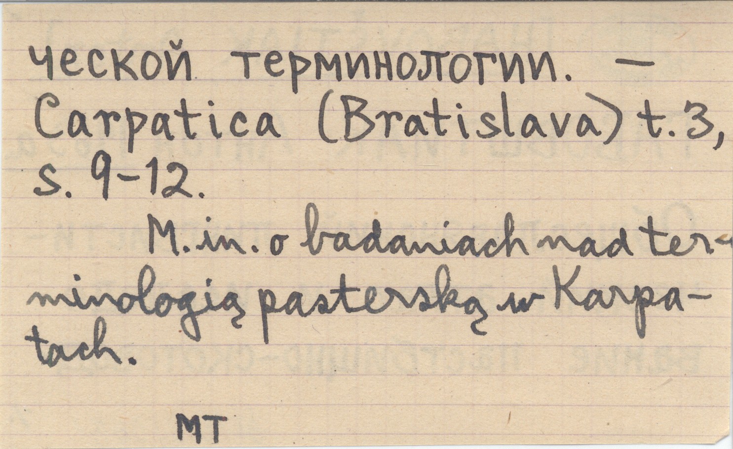 Carpatica (Bratislava) , T. 3, S. 9-12. M. in. o badaniach nad terminologią pasterską w Karpatach.