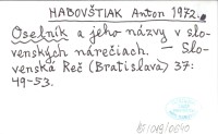 HABOVŠTIAK Anton 1972 Oselník a jeho názvy v slovenských nárečiach.